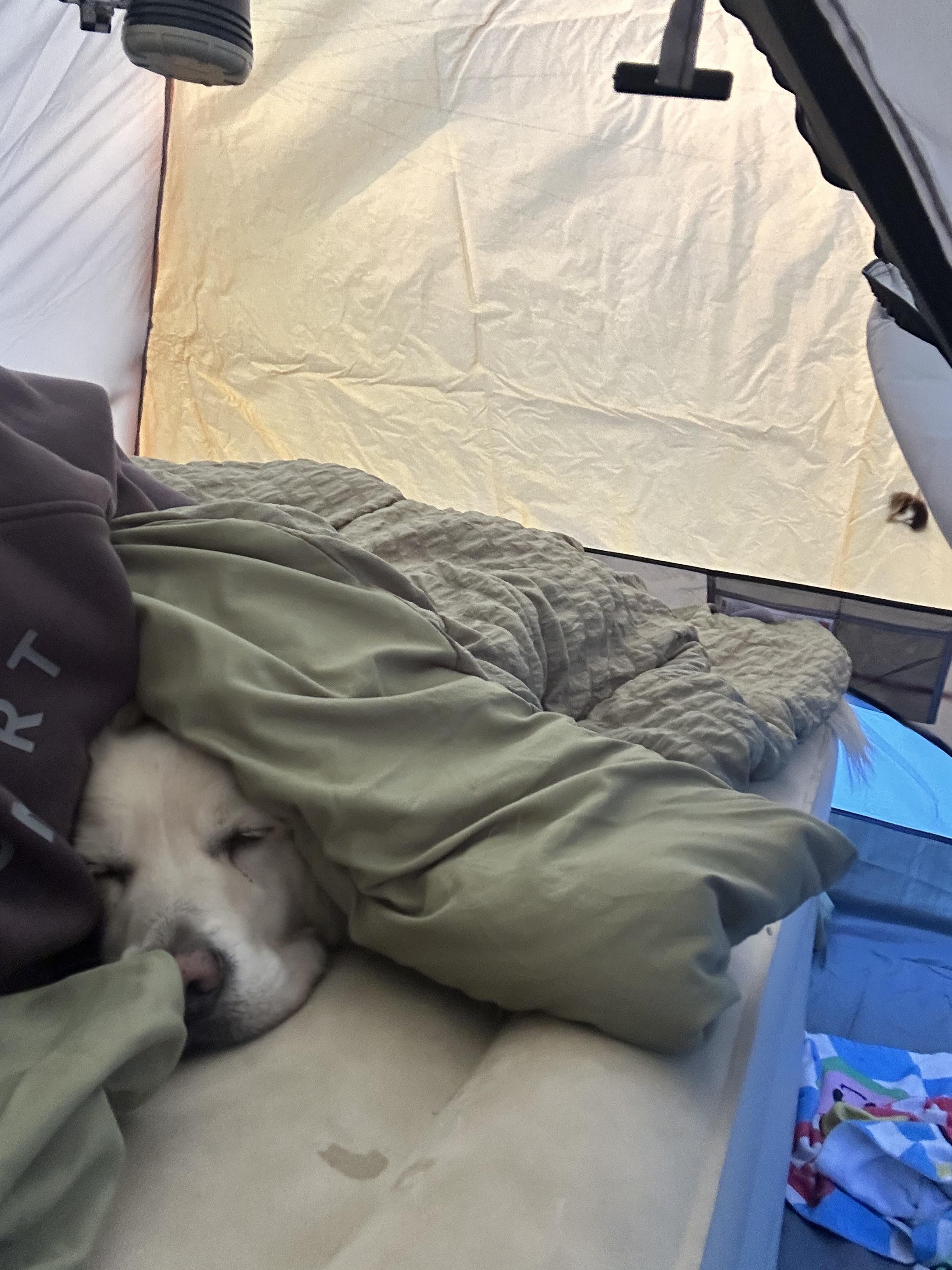 my husband & i camped for the first time last night and of course brought our dog. he loves being outside & it just started to get colder where we live. we woke up to a chilly morning & i got the best snuggles from my boy!!! happy to report- i finally get what camping is all about! i want to go back…now!