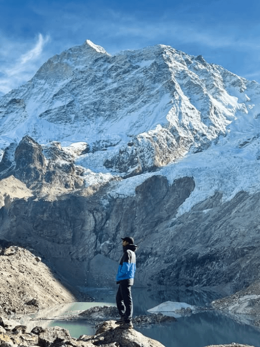 This was the easiest day of the trek, about 5 hours to reach Base Camp. Elevation gain from 3,000 m to 4,870 m. The views of Makalu and surrounding peaks are stunning. If you have extra time, you can continue further to Swiss Camp (~4,950 m) or Advance Camp (High Camp) (~5,100 m), where mountaineers acclimatize. We returned from Base Camp the next day due to time constraints—corporate mazdoors have limits!