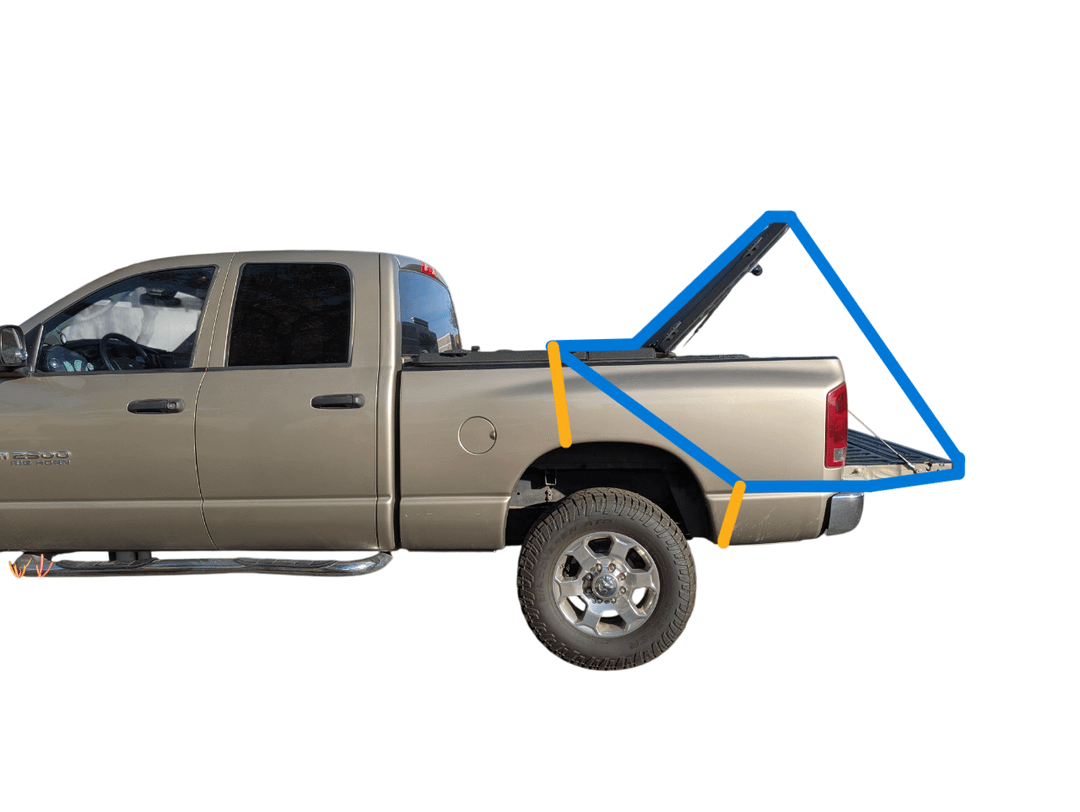 I currently use a standard truck bed tent for short camping trips. It works well, but it requires removing my Diamondback tonneau cover which is a pain. I’m trying to design a tent shell that can go over the Diamondback while it’s popped open, so I don’t have to remove it.