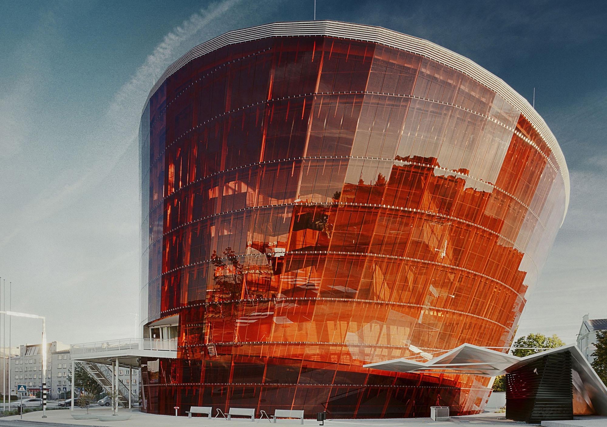 Great Amber is a product of a period when cultural buildings leaned unapologetically into symbolism to define a city’s image. Rising as a tilted, translucent amber-colored cone, the concert hall takes its form from local legend, with the structure appearing to brace itself against the coastal wind. Wonder what nickname the locals have for it?