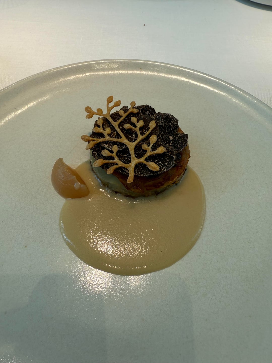 – Celeriac and truffle mille feuille with apple sauce