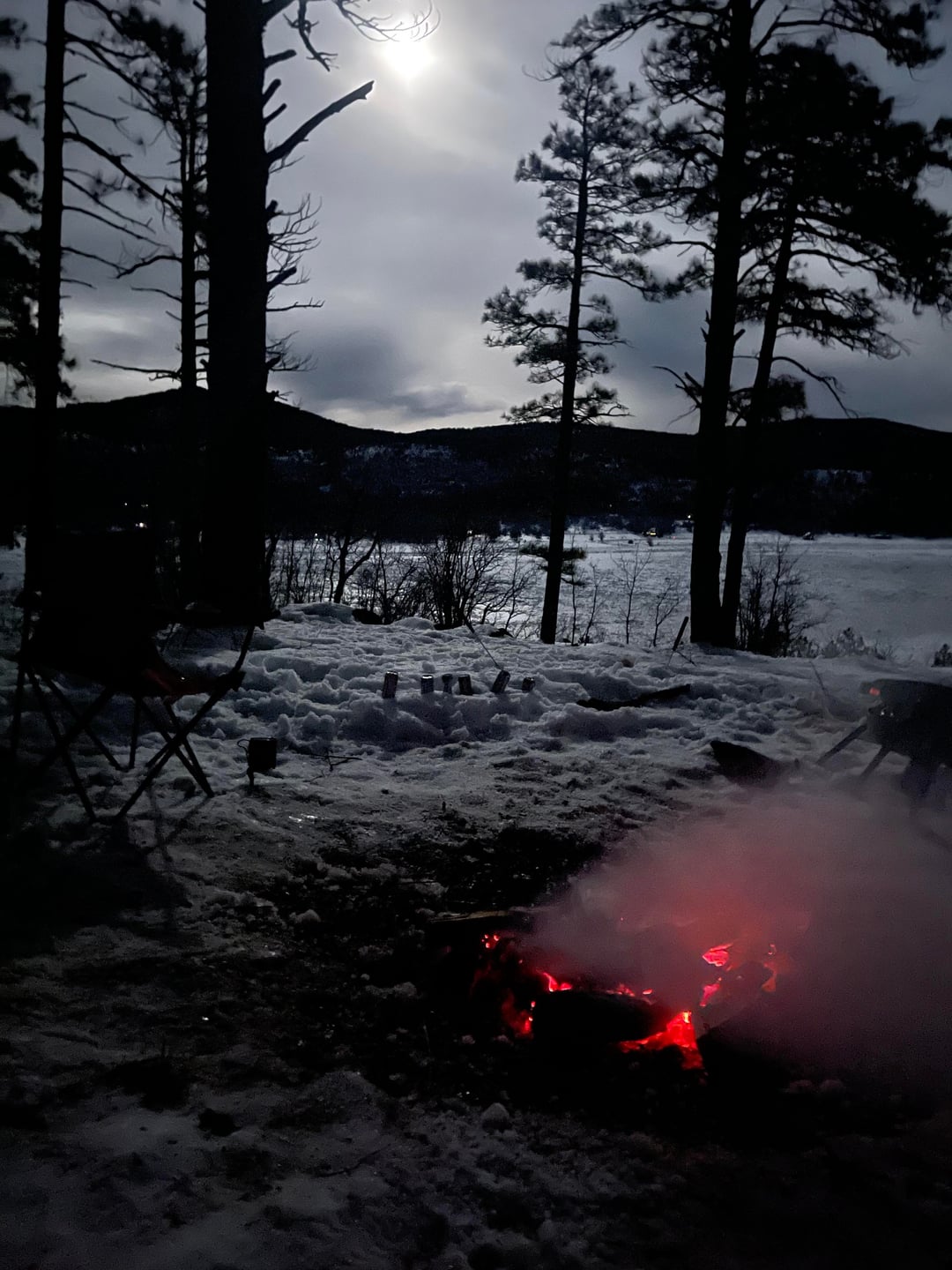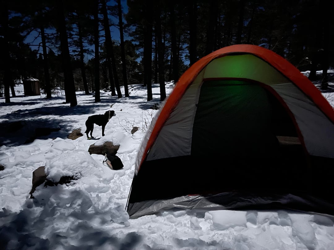 We went about an hour south of Flag in Happy Jack near Stoneman Lake and camped for 2 nights after a heavy snow storm. Every time we go in the winter we feel like we’re the only ones on the planet since everyone’s afraid of the cold. The other cool thing is you can just stick whatever food you brought (frozen or refrigerated) in the snow, drinks too, and everything is good to go. My friend and I both brought our dogs and played a lot of board games. Incredible experience.